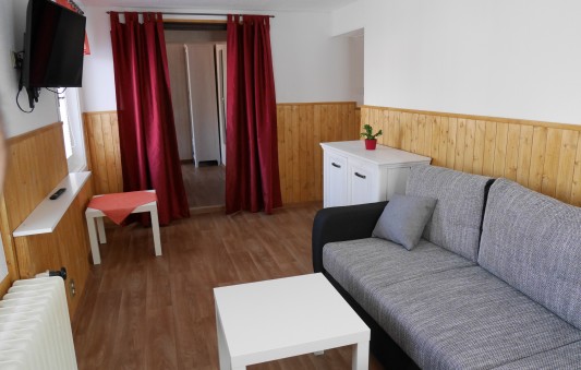 | Die Apartments befinden sich im ersten Stock des Hauptgebäudes und in den Nebengebäuden des Komplexes. Einzelne Apartments sind für 2-6 Personen geeignet. Bei Bedarf kann das Sofa ausgeklappt werden, um zwei weitere Sitzplätze zu erhalten. Sie haben ein Schlafzimmer mit einem Doppelbett, Stauraum und einen Sessel für Momente der Ruhe, wie zum Beispiel ein Buch zu lesen. Wir haben insgesamt 5 Apartments mit eigenem Bad, von denen das luxuriöseste mit einer Badewanne ausgestattet ist. |