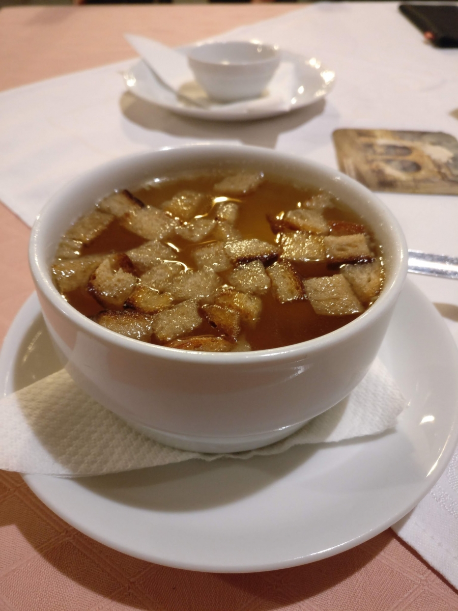 - Česneková polévka se šunkou a sýrem